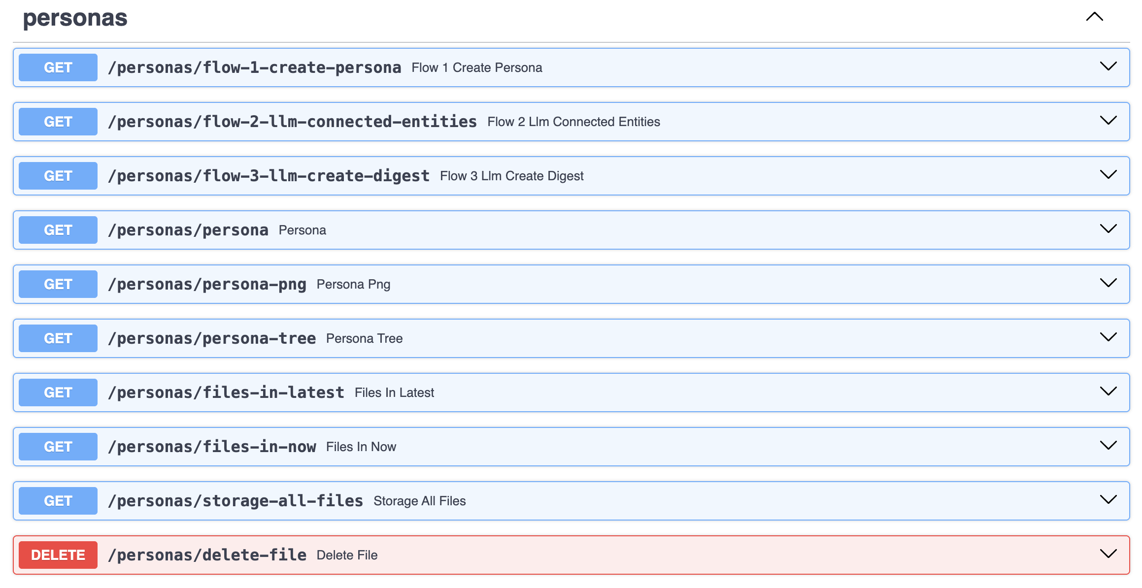 In the mvp.MyFeeds.ai service, we have a set of APIs for Personas: